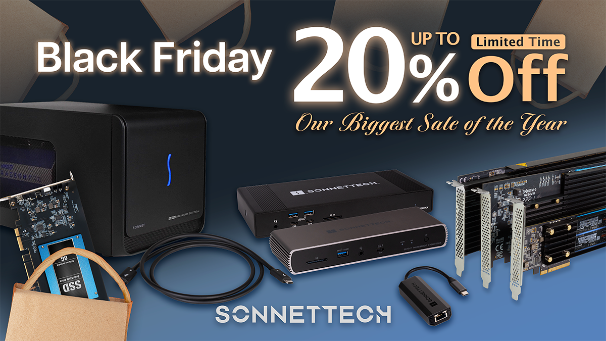What: Sonnet Technologies is having a sale on a selection of popular products, including a Thunderbolt™ 4 dock, an eGPU chassis, SATA and M.2 SSD PCIe® cards, and more. For a limited time, buyers can get up to 20% off the price of the following products: